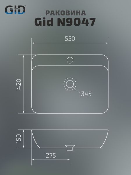 Раковина Gid N9047 51184 накладная белая 55x42x15 купить