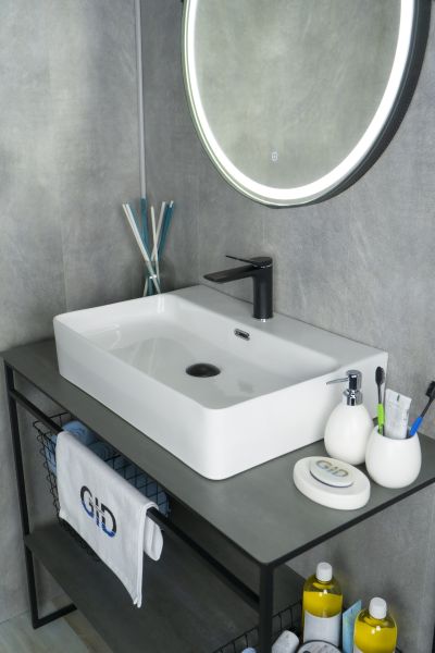 Серия Geometrico с прямоугольной формой: стиль и практичность с испанским качеством и европейскими стандартами. Раковина накладная GiD N9256 - это стильная модель, выполненная из высококачественной мелкопористой керамики с белым глянцевым покрытием, что обеспечивает долговечность и легкость в уходе. Прямоугольная форма углами придает ей утонченный и современный вид, а эргономичная чаша удобна для повседневного использования. Накладная конструкция позволяет легко установить раковину на столешнице, предоставляя дополнительное пространство вокруг. Оснащена отверстием под смеситель, что делает её удобным выбором для современной ванной комнаты.