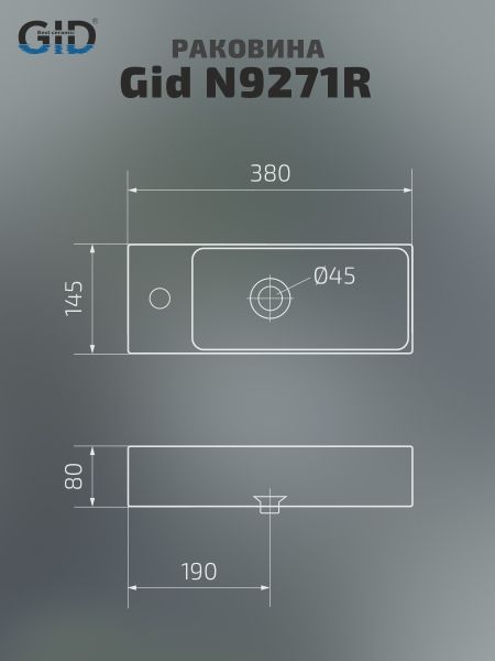 Раковина Gid N9271R 61128R подвесная белая 38x14.5x8