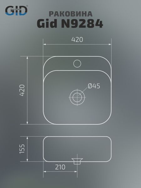 Раковина Gid N9284 51219 накладная белая 42x42x15.5 купить