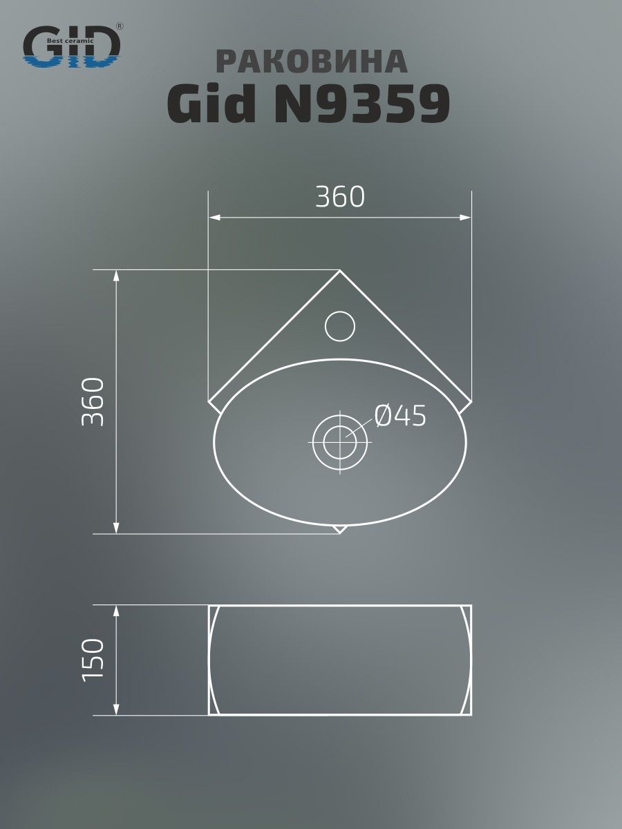 Раковина Gid N9359 61111 подвесная белая 36x36x15 купить