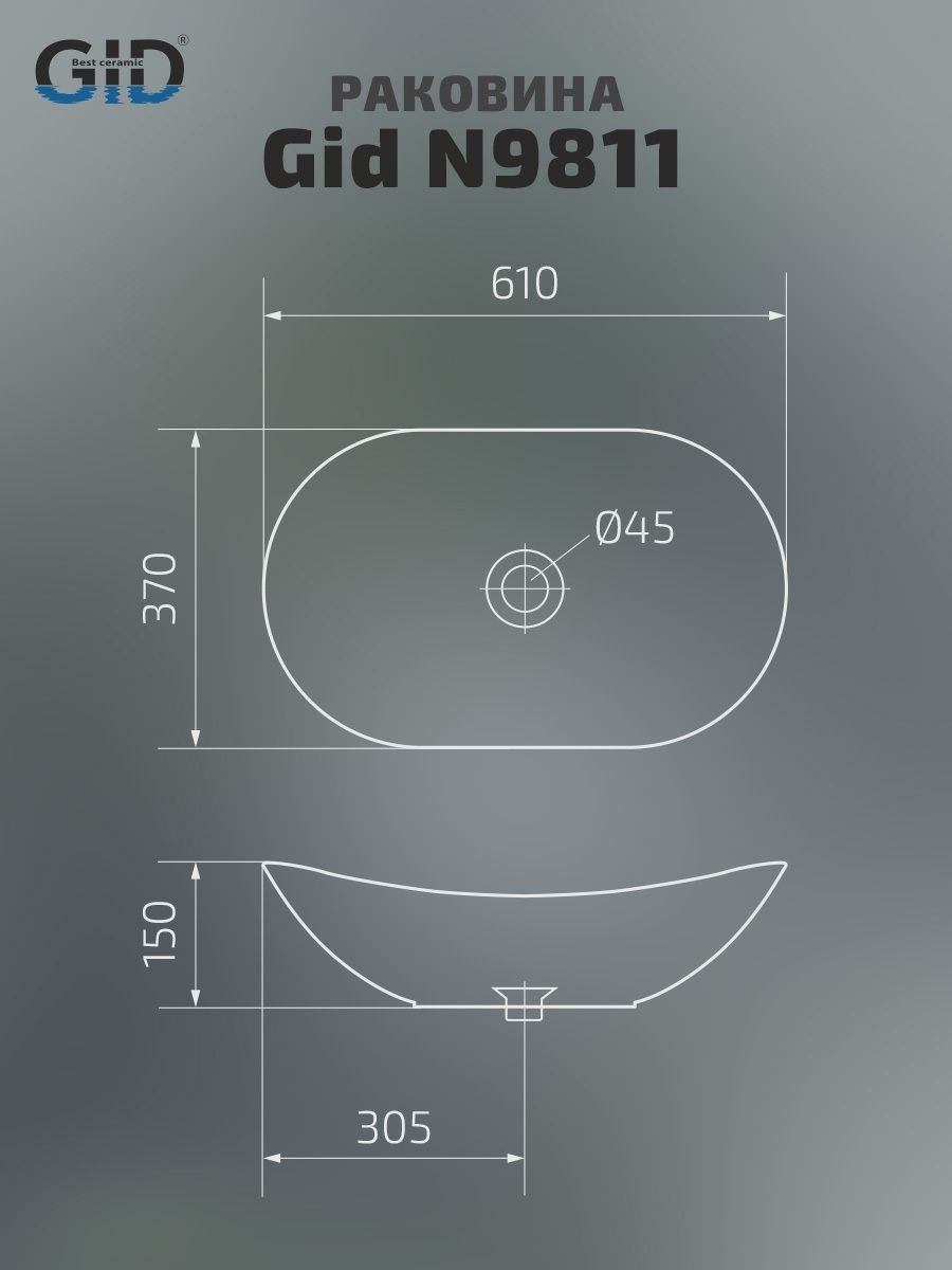 Раковина Gid N9811 51175 накладная белая 61x37x15 купить