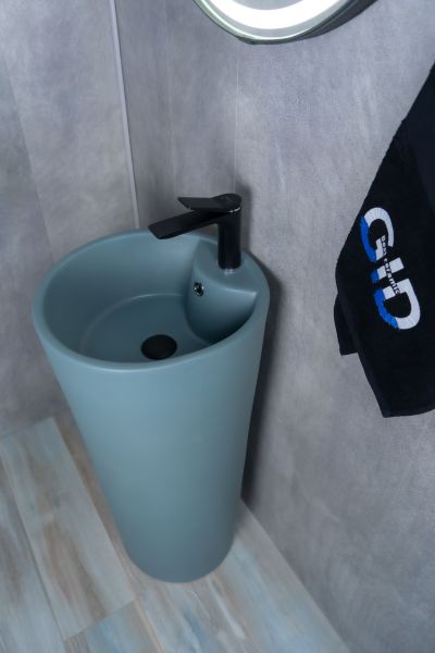 Autonomo — коллекция напольных раковин, созданных по европейским стандартам. Испанское качество гарантирует долговечность и надежность. Напольная раковина GiD Nb131gm выполнена из высококачественной мелкопористой керамики с неповторимым графитовым покрытием в цвете хаки. Стильная круглая форма обеспечивает удобство использования и добавляет современный акцент в интерьер ванной комнаты. Модель оснащена отверстием для смесителя, что облегчает процесс установки и позволяет подобрать смеситель, идеально сочетающийся с дизайном. Напольная установка гарантирует устойчивость и надежность, придавая ванной комнате завершенный и особенный вид.