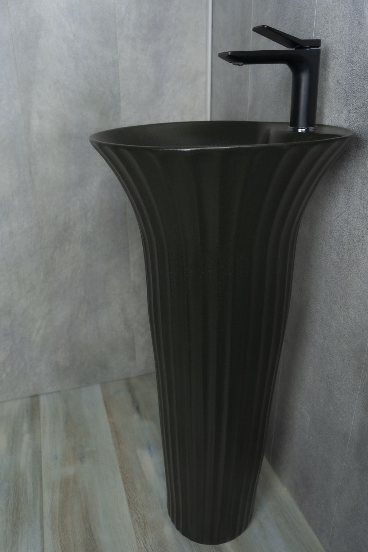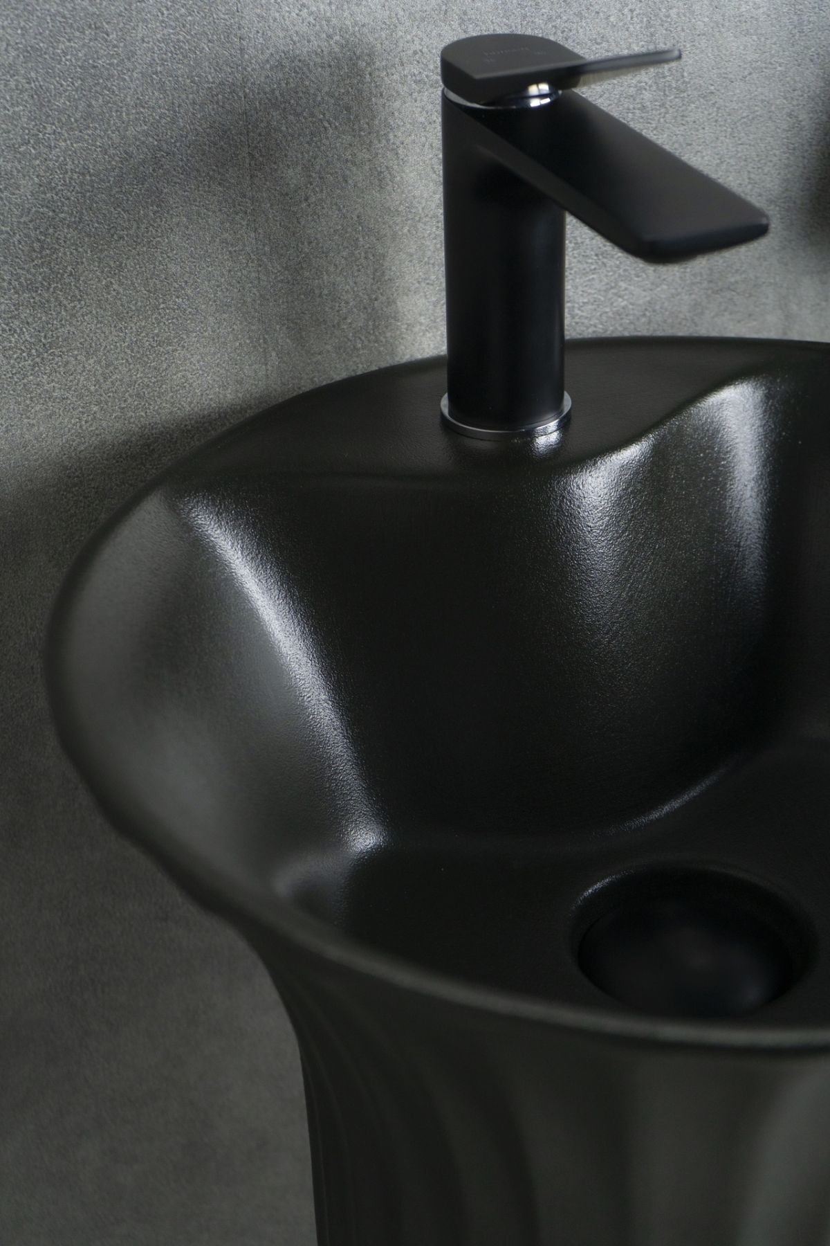 Autonomo — коллекция напольных раковин, созданных по европейским стандартам. Испанское качество гарантирует долговечность и надежность. Напольная раковина GiD Nb132bg выполнена из высококачественной мелкопористой керамики с неповторимым графитовым покрытием в черном цвете. Стильная тюльпанообразная форма обеспечивает удобство использования и добавляет современный акцент в интерьер ванной комнаты. Модель оснащена отверстием для смесителя, что облегчает процесс установки и позволяет подобрать смеситель, идеально сочетающийся с дизайном. Напольная установка гарантирует устойчивость и надежность, придавая ванной комнате завершенный и особенный вид.