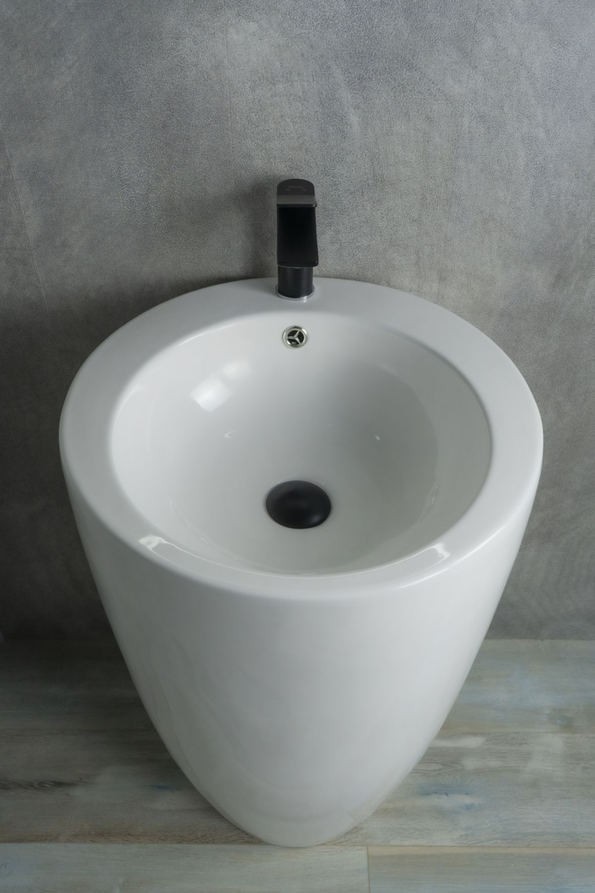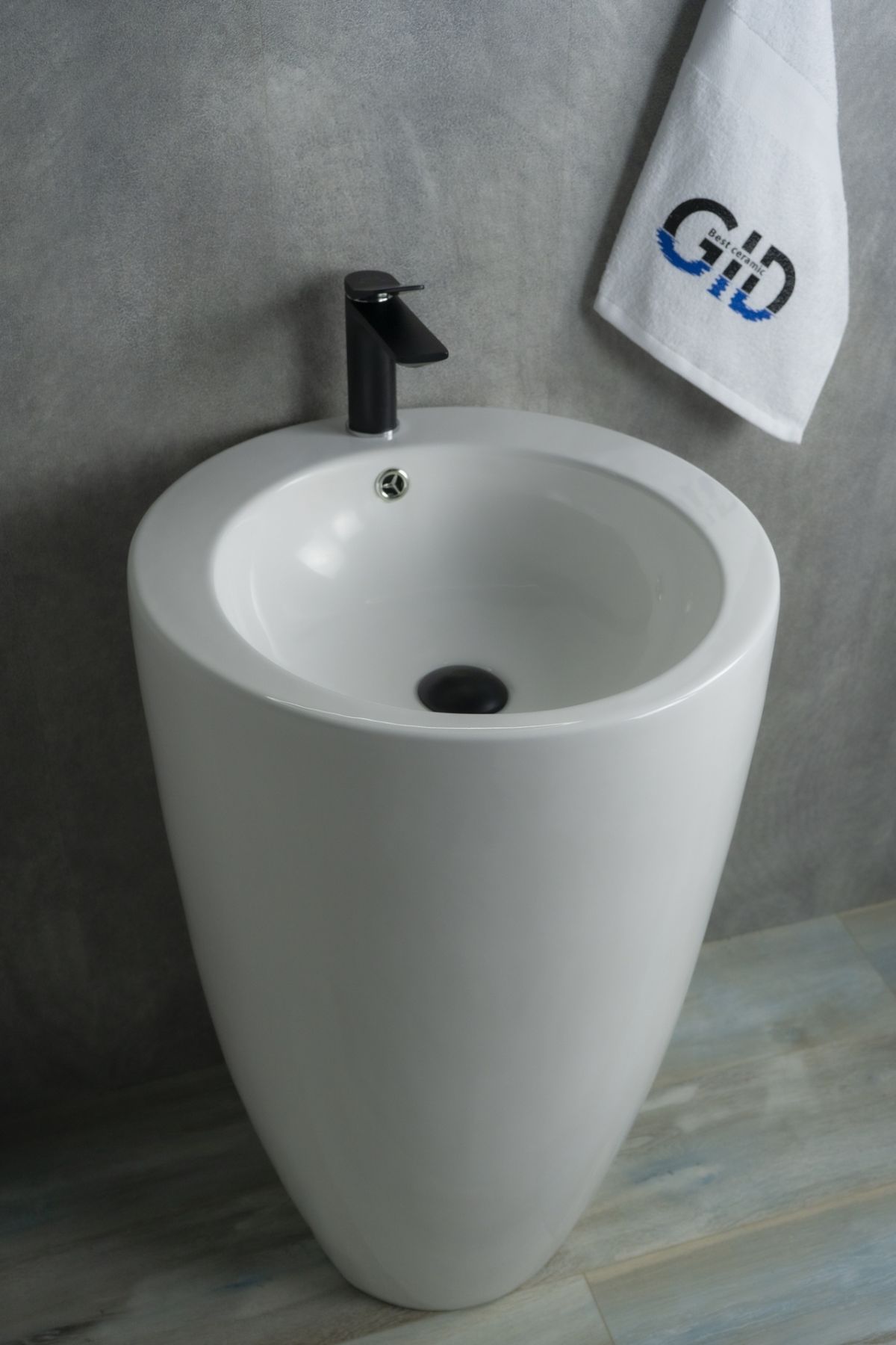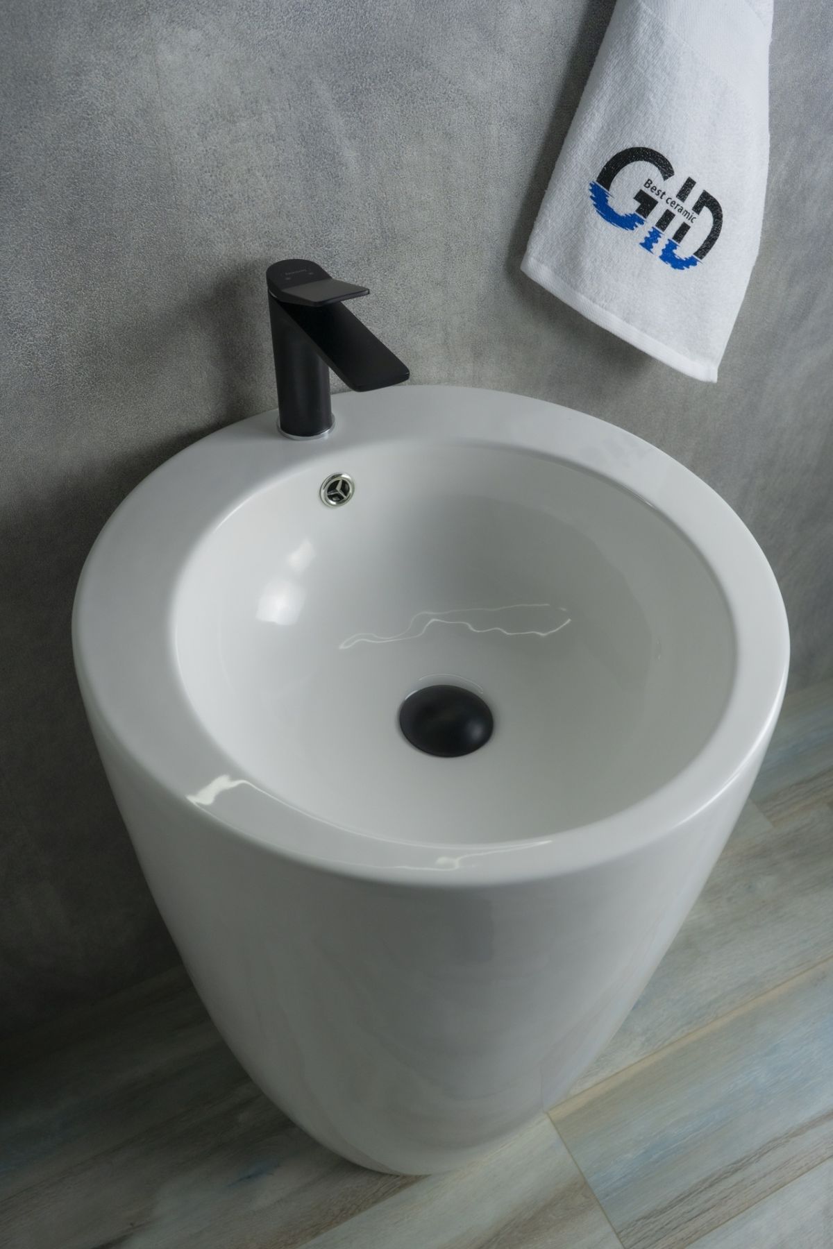 Напольная раковина GiD Nb133 изготовлена из прочной мелкопористой керамики с глянцевым белым покрытием, придающим интерьеру свежесть и утонченность. Круглая форма сочетает в себе комфорт использования и стильный внешний вид. Данная модель имеет отверстие для смесителя, что облегчает её интеграцию в дизайн ванной комнаты. Напольный монтаж обеспечивает надежность и практичность в эксплуатации.