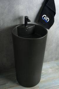 Autonomo — коллекция напольных раковин, созданных по европейским стандартам. Испанское качество гарантирует долговечность и надежность. Напольная раковина GiD Nb135bg выполнена из высококачественной мелкопористой керамики с неповторимым графитовым покрытием в черном цвете. Стильная круглая форма обеспечивает удобство использования и добавляет современный акцент в интерьер ванной комнаты. Модель оснащена отверстием для смесителя, что облегчает процесс установки и позволяет подобрать смеситель, идеально сочетающийся с дизайном. Напольная установка гарантирует устойчивость и надежность, придавая ванной комнате завершенный и особенный вид.
