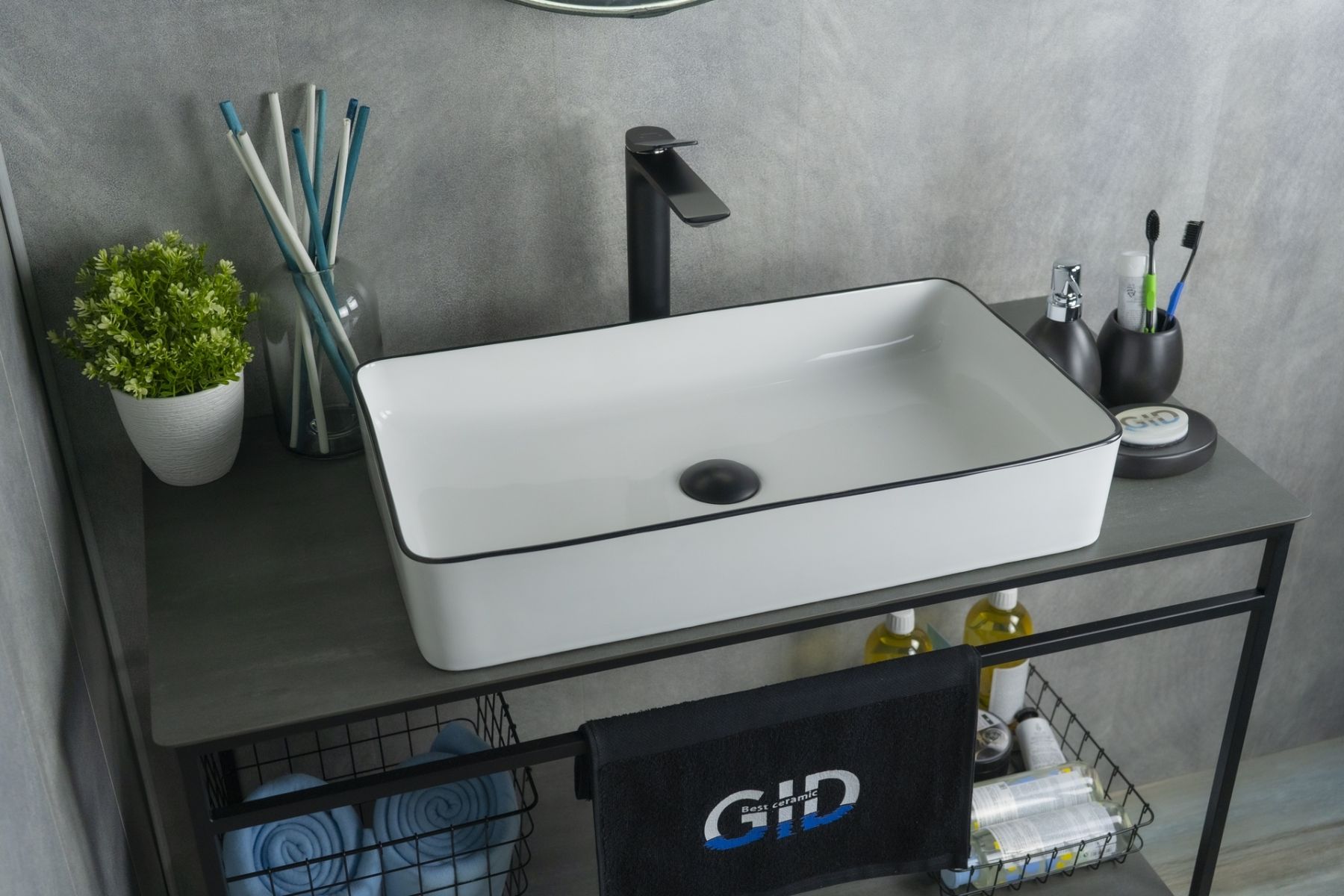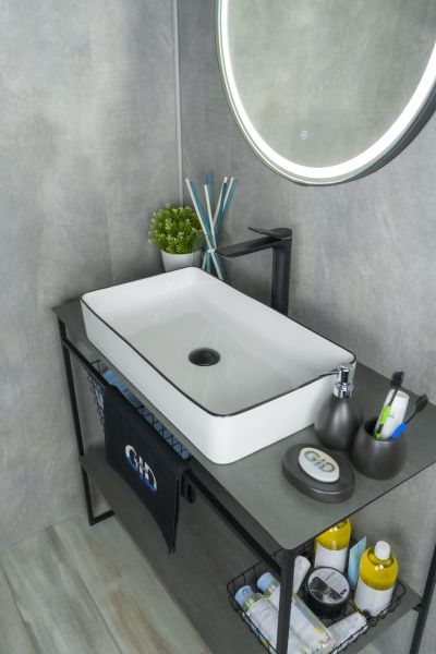 Серия Geometrico с прямоугольной формой: стиль и практичность с испанским качеством и европейскими стандартами. Раковина накладная GiD Nc9399 — уникальная модель в стильном белом цвете с черной кромкой, созданная для современного интерьера. Её прямоугольная форма гармонично дополняет пространство, создавая акцентный элемент в ванной комнате. Мелкопористая керамика отличает раковину долговечностью, устойчивостью к загрязнениям и простотой в уходе. Благодаря отсутствию отверстия под смеситель раковина позволяет реализовать различные дизайнерские решения по размещению смесителя. Накладной монтаж обеспечивает лёгкость установки и сохраняет максимум пространства на столешнице.