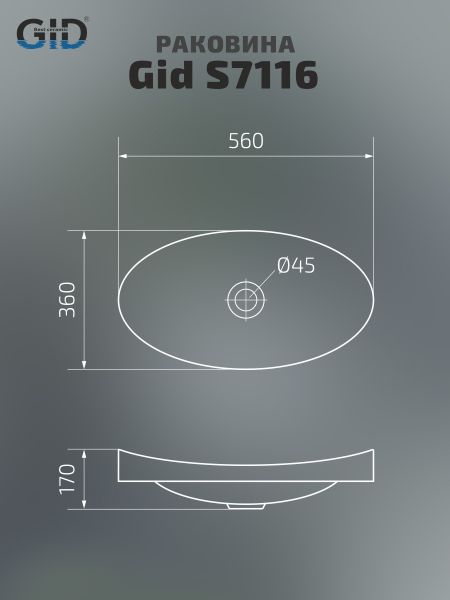 Раковина Gid S7116 71162 встраиваемая сверху белая 56x36x17 купить
