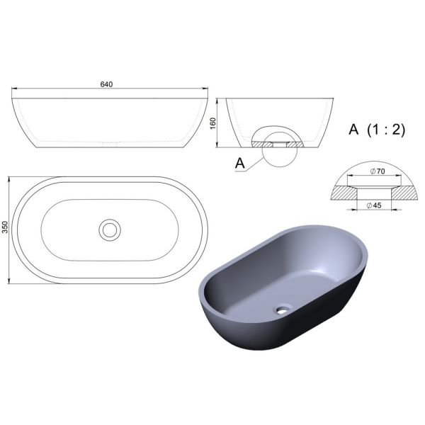 Раковина Holbi Mercury 64см бетон 2.02.009.44.4 купить