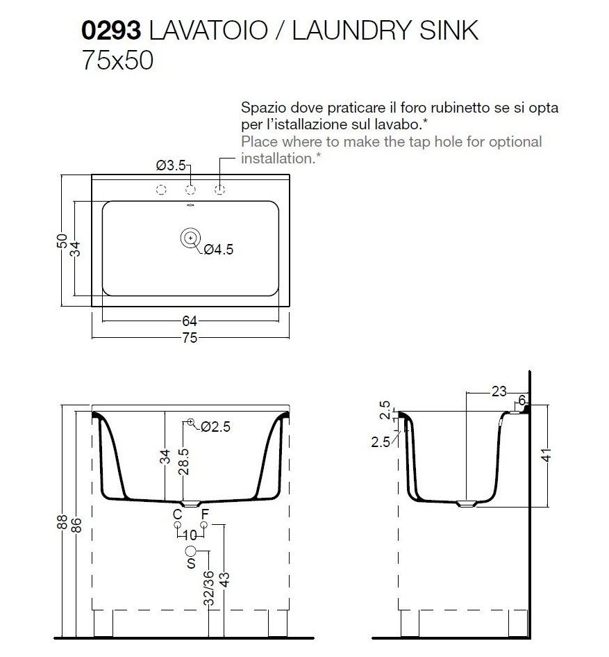 Раковина хозяйственная Kerasan Aquadom 029301*0 75см белый
