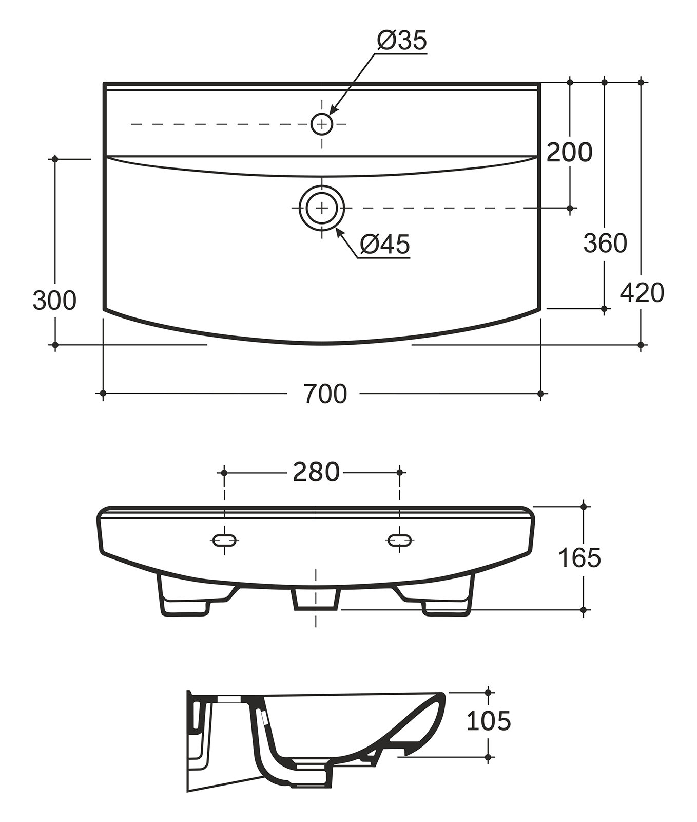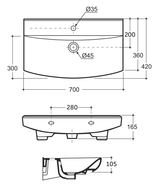 • Размер, мм (ШxГxВ): 700x420x165