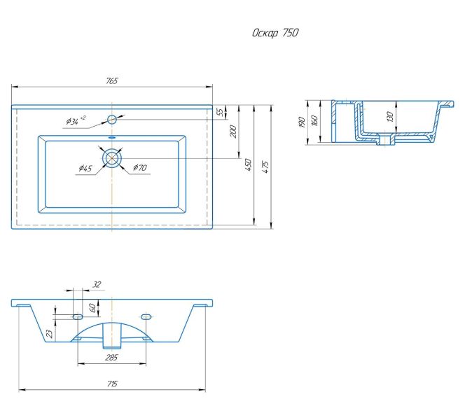 Размер, мм (ШxГxВ): 765x475x190