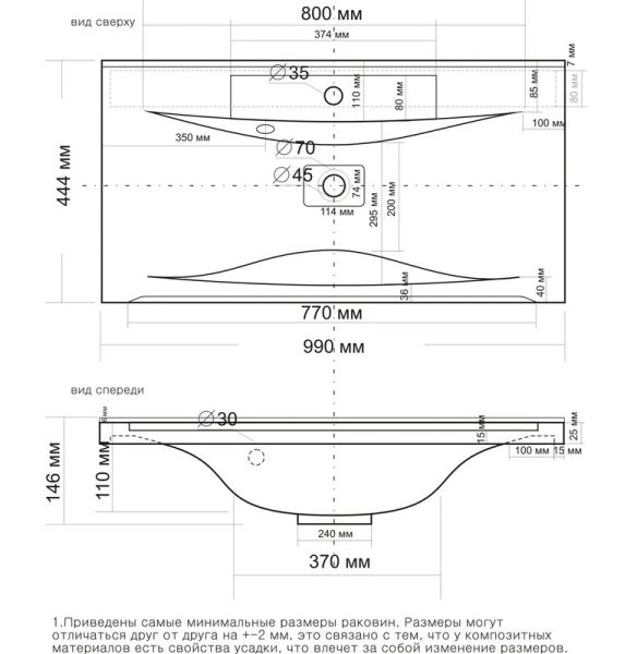 • Отверстия под смеситель: