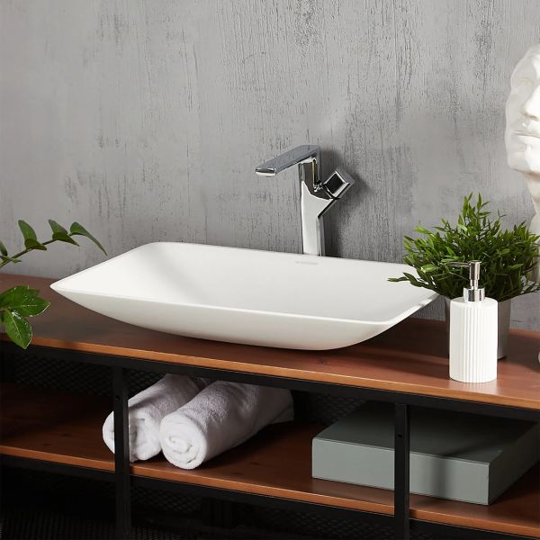Раковина из искусственного камня для ванной комнаты. Легкая и «воздушная». Востребованной прямоугольной формы. Устанавливается на поверхность столешницы или мебели сверху накладным способом. Дно чаши не плоское, вода по стенкам беспрепятственно стекает в сливное отверстие до последней капли – вода не застаивается после активного использования.Stelvio Quattro имеет матовую, бархатистую поверхность. Полимерный материал принимает температуру окружающей среды, поэтому в жилом пространстве данная модель раковины всегда будет приятной на ощупь.Уход за раковиной из искусственного камня прост: в большинстве случаев достаточно протереть поверхность влажной губкой с чистящим средством. Материал не впитывает влагу, не порист, непроницаем для плесени, бактерий и грибков.