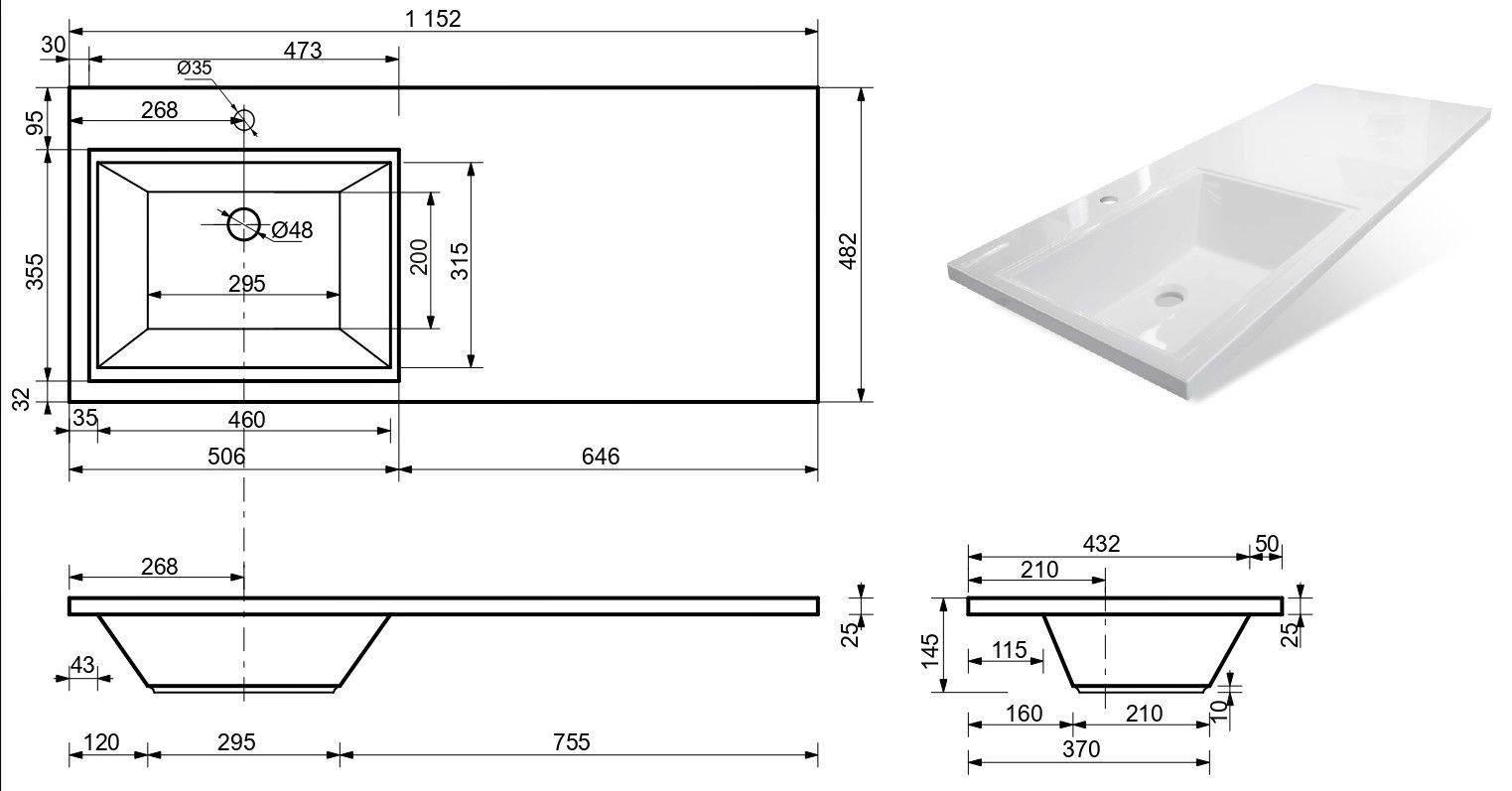 Раковина над стиральной машиной Эстет Dallas silk ФР-00014929 Л 115см белый