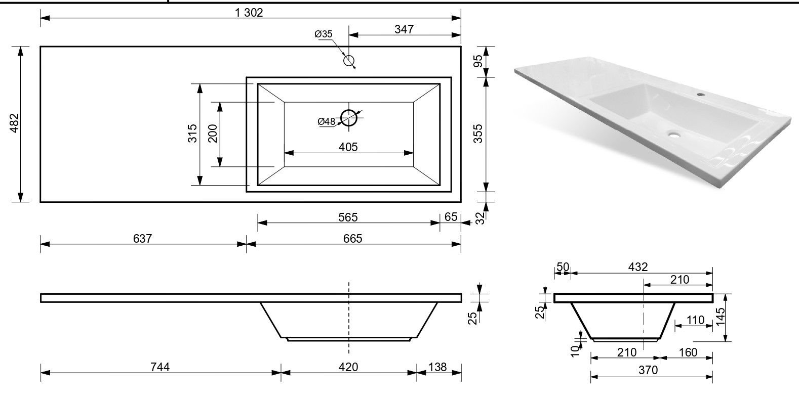 • Отверстия под смеситель: