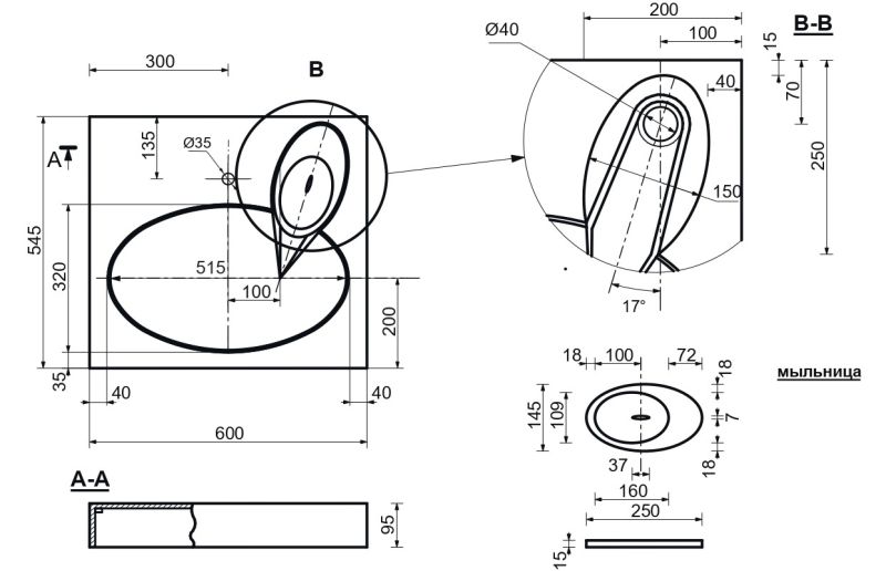 • Отверстия под смеситель: