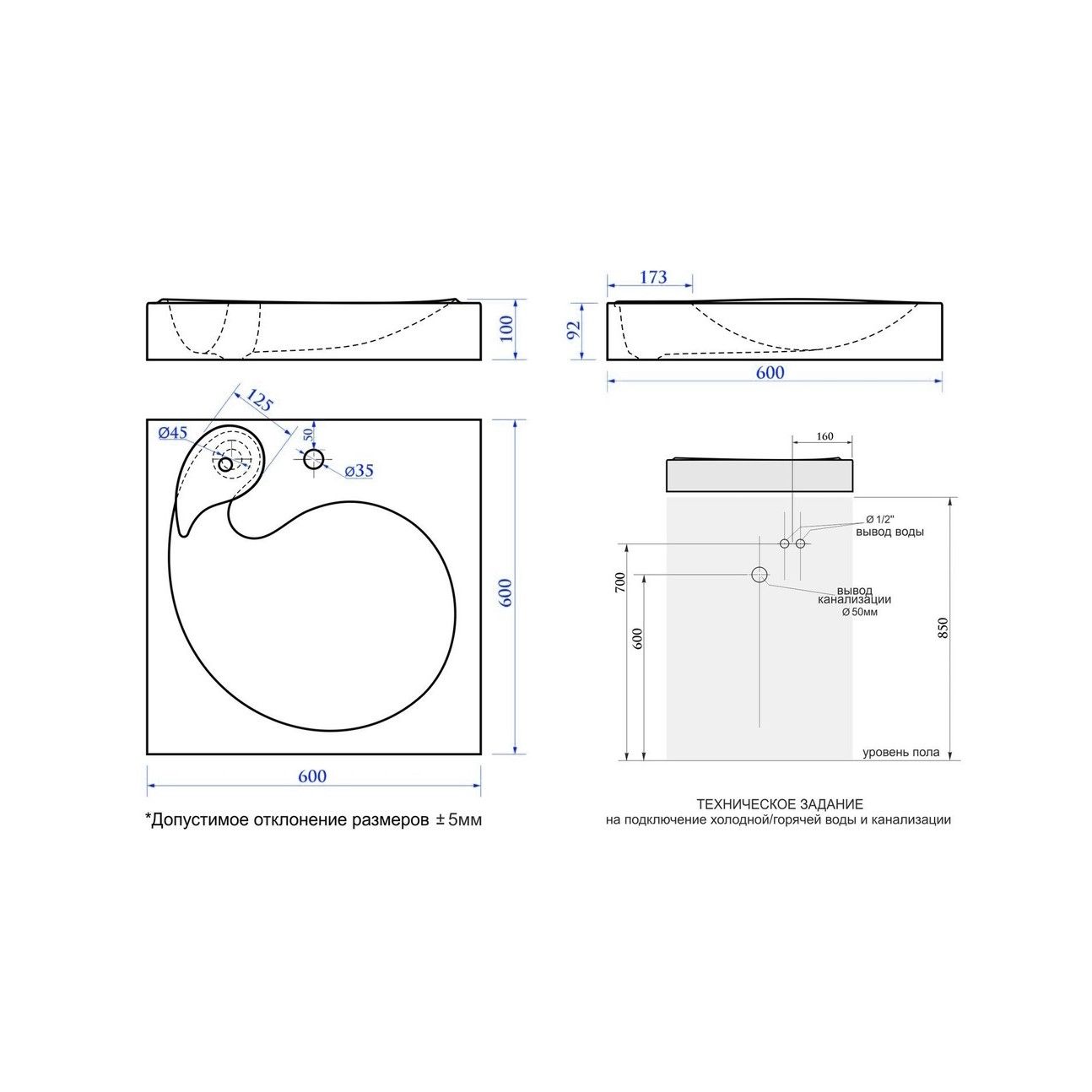 Раковина над стиральной машиной Maretti AS13SM51-844, белая. Материал: литьевой мрамор. Размер: 60x60x10. Форма: квадратная.