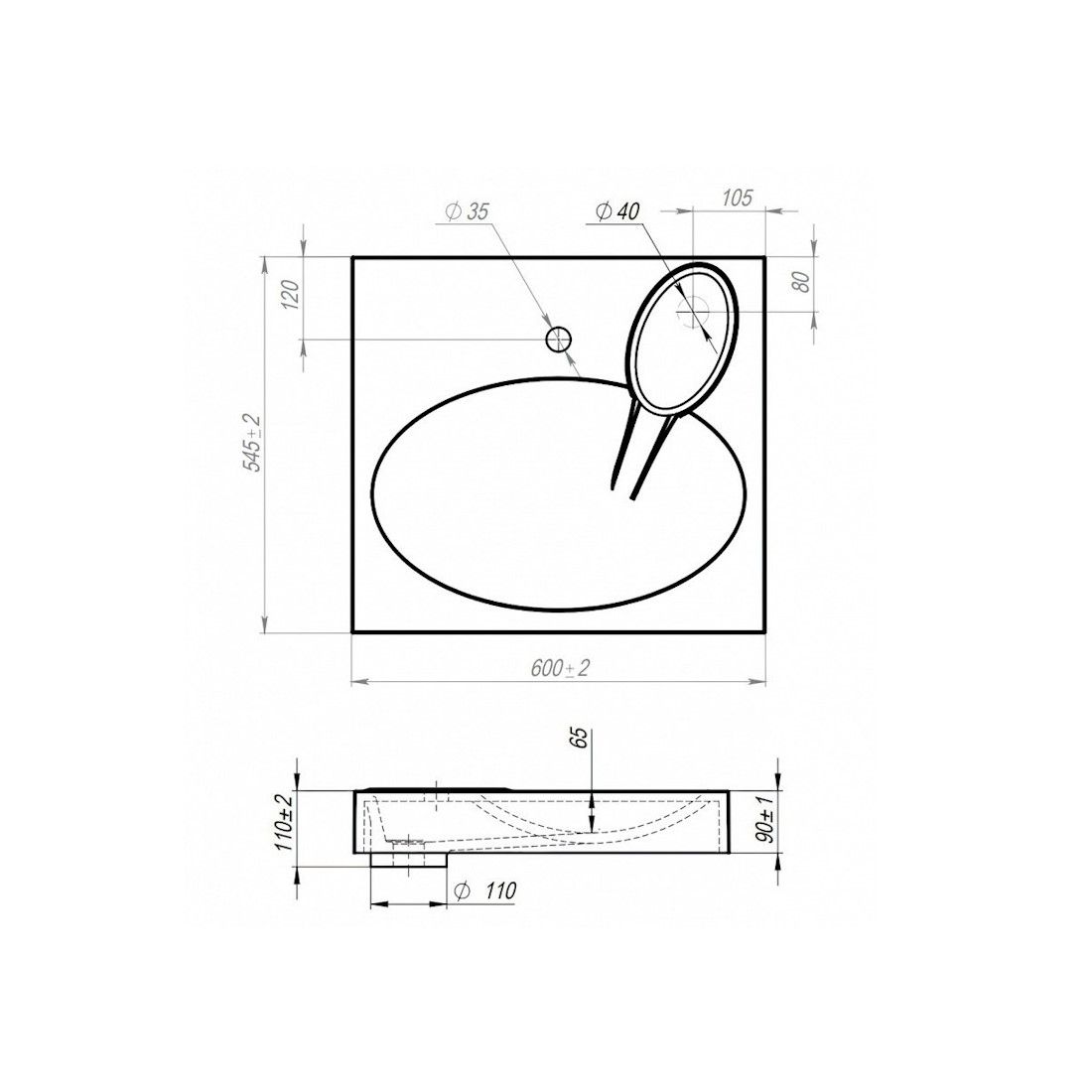 Диаметр слива, см:4
