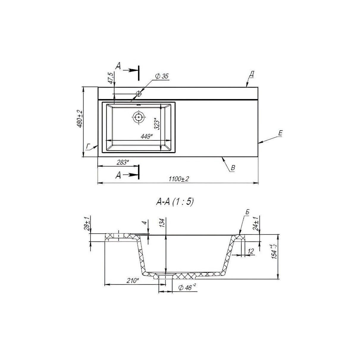 Материал:литьевой мрамор