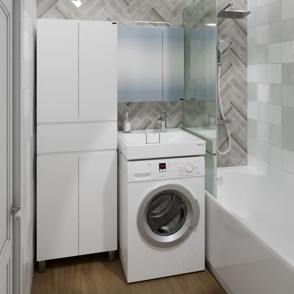 Раковина установленная над стиральной машиной является одним из самых оптимальных способов экономии полезного пространства в ванной комнате. Установка раковин над стиральной машиной является актуальной для небольших квартир в современных новостройках, апартаментах, студиях. Огромным плюсом также является то, что нет необходимости делать дополнительные коммуникации. Слив воды расположен в задней части умывальника и расположение сифона не мешает установке стиральной машины. Таким образом, все коммуникации собраны в одном месте.