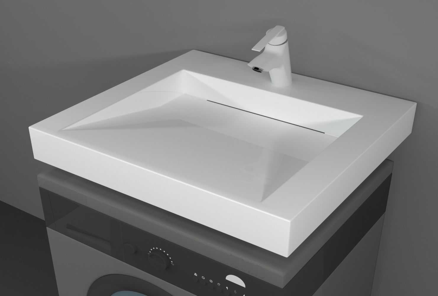 Ультрасовременная раковина в ванную комнату для установки над стиральной машинкой с щелевым сливом. Крепится на кронштейны, которые входят в комплект поставки. Верхний слой высококачественного гелькоута образует декоративно-защитное покрытие.Основные характеристики:
