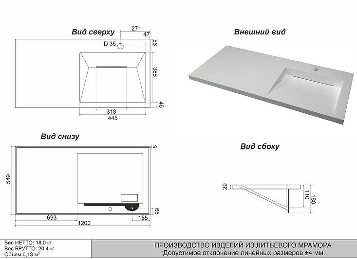 Отверстия под смеситель:1