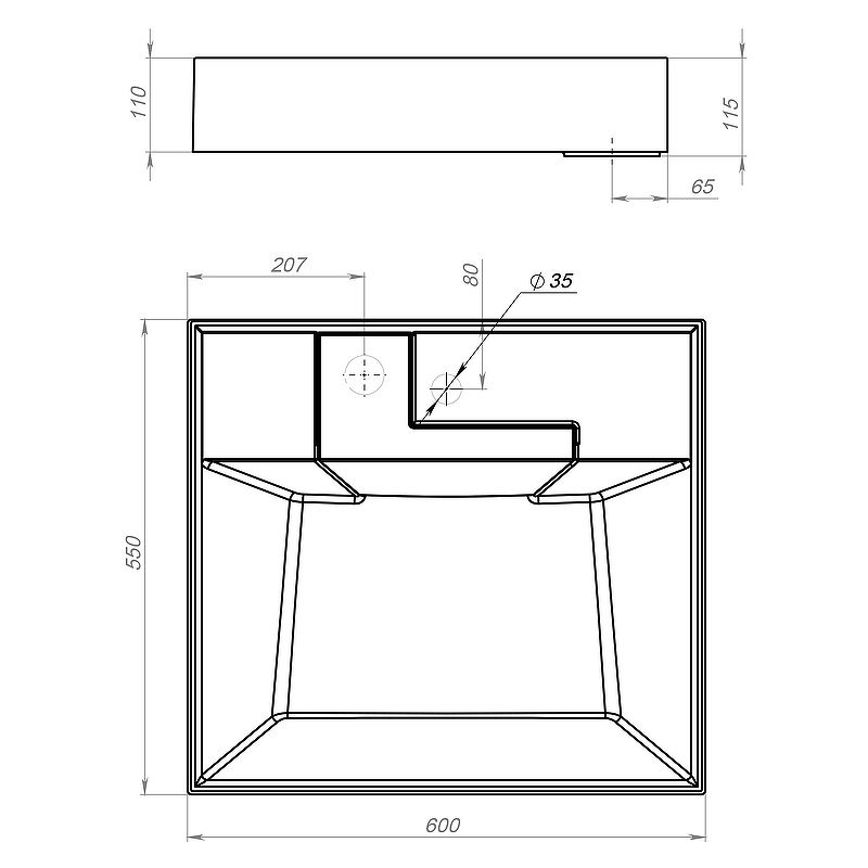 • Отверстия под смеситель: