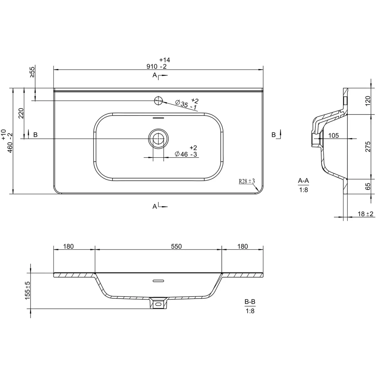 Раковина накладная Brevita Onda 90 B-OND090-01 белый