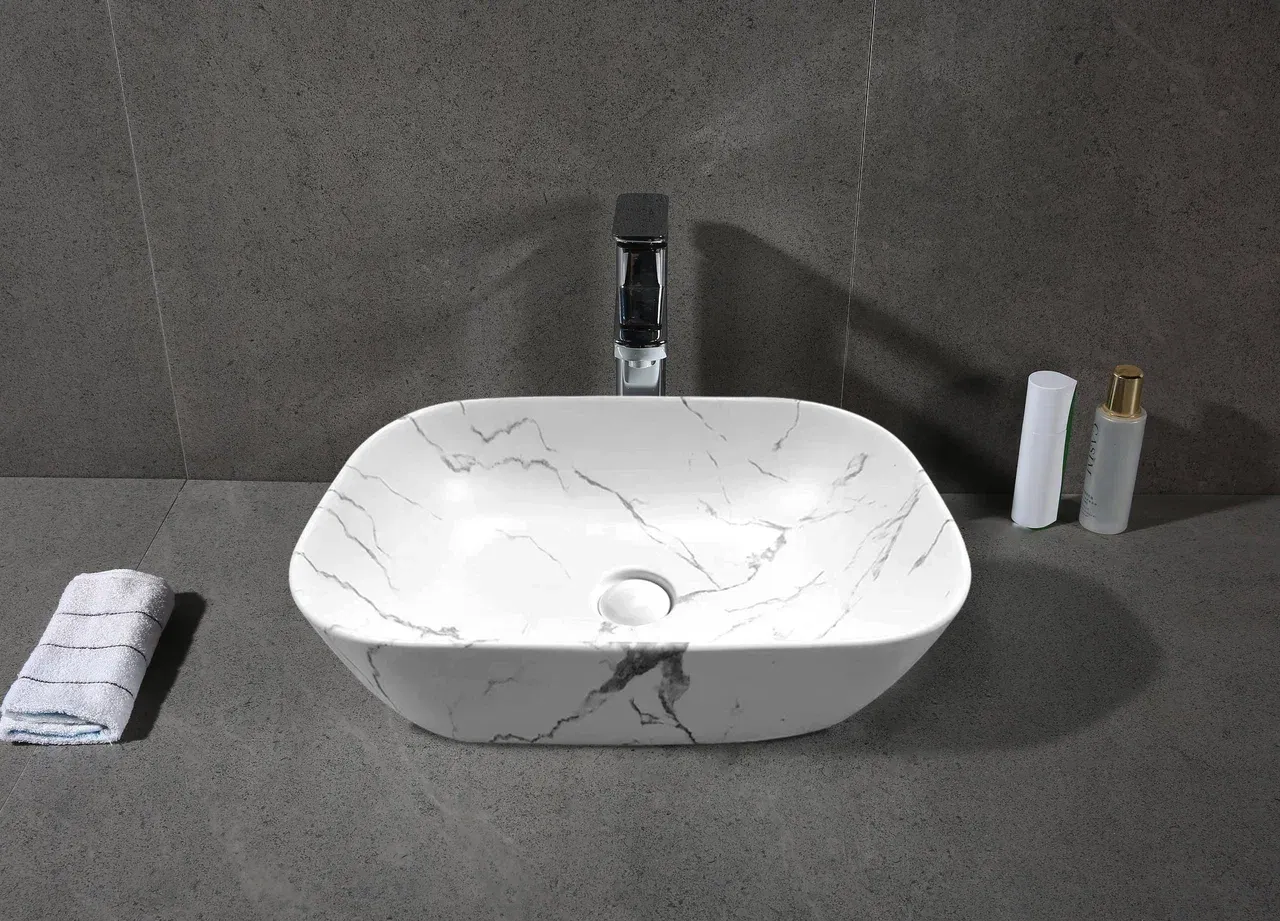 Раковина накладная Ceruttispa CR8215MMW 45см белый мрамор матовый купить