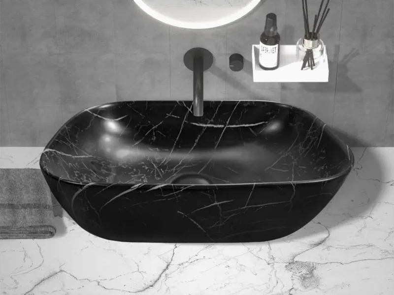 Раковина накладная Ceruttispa CR8217MMB 50см чёрный мрамор матовый купить