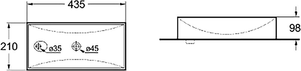 Раковина накладная SantiLine 43,5х21х9,8 см, прямоугольная белая, подвеснаяАртикул: SL-2023R