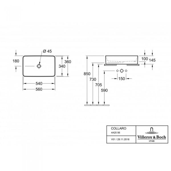 Раковина накладная Villeroy Boch Collaro 36 x 56 см 4A205601 альпийский белый купить