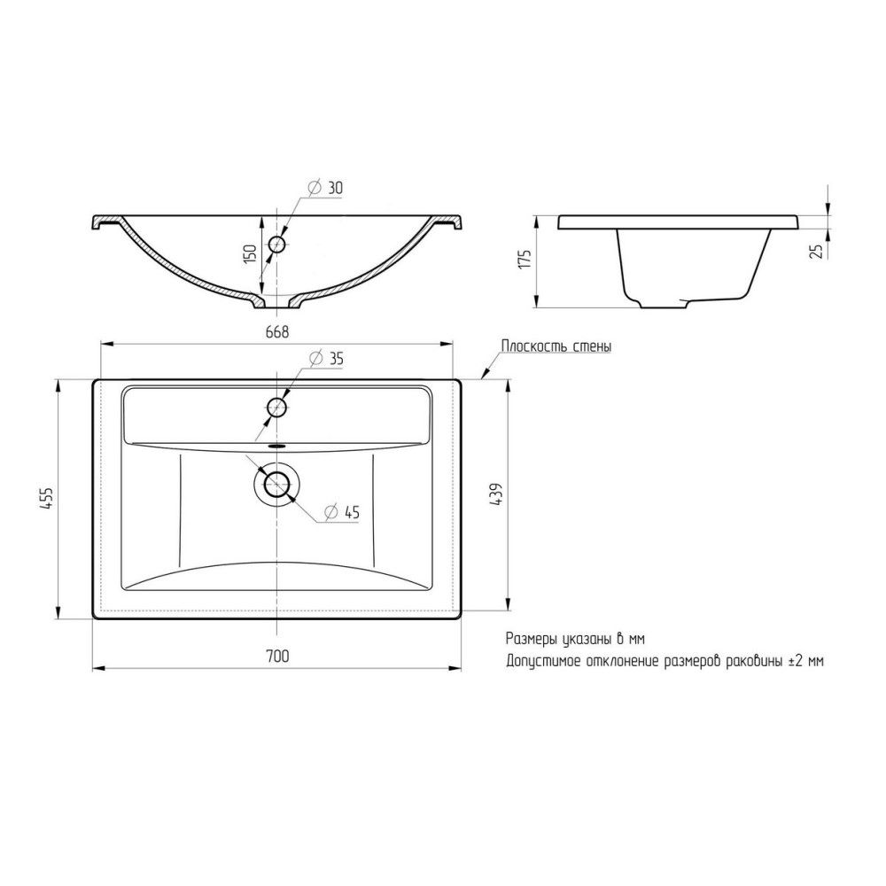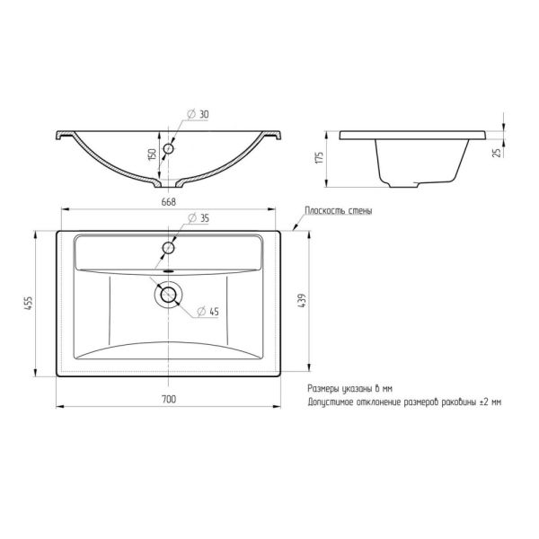 Раковина Paola Mario 700 c возможностью установки на тумбу со свесом или вровень. Современная, с... Подробнее