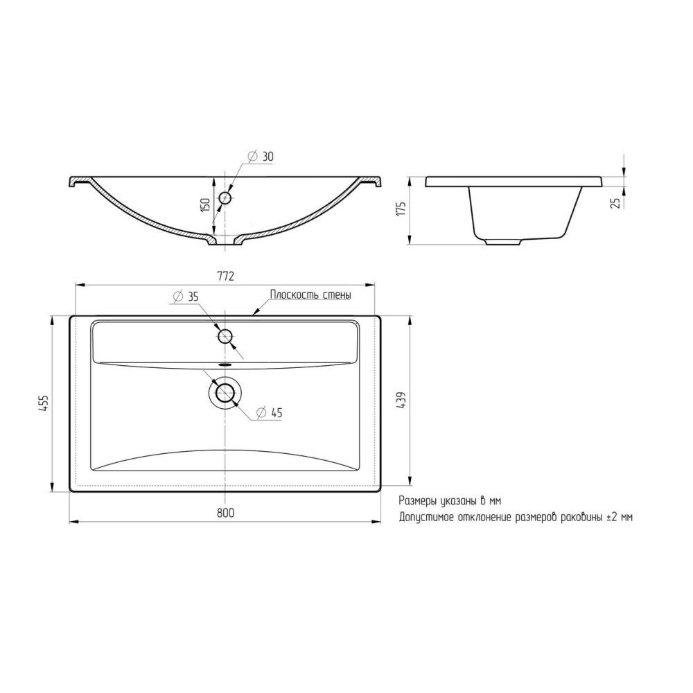 Раковина Paola Mario 800 c возможностью установки на тумбу со свесом или вровень. Современная, с... Подробнее