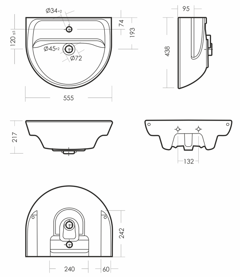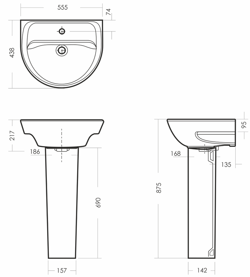 Размеры умывальника 555 x 438 x 217