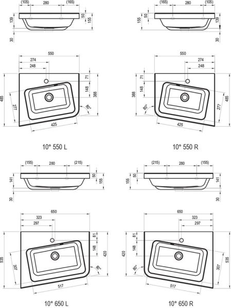 Раковина Ravak 10° 550 R XJIP1155000 правый