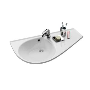 Умывальник с удобным моющим пространством и местом для вещей предназначен, прежде всего, для установки над ванной.