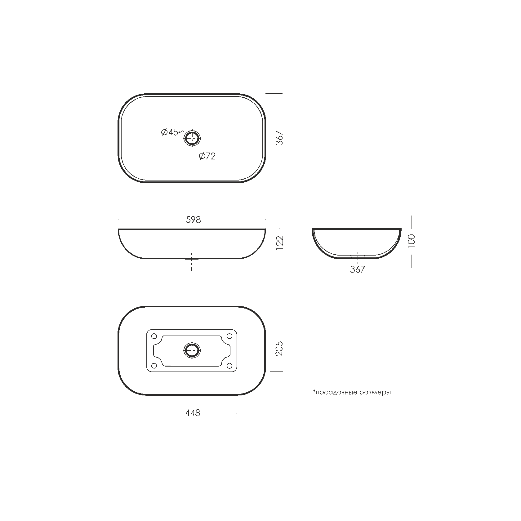 • Отверстия под смеситель: