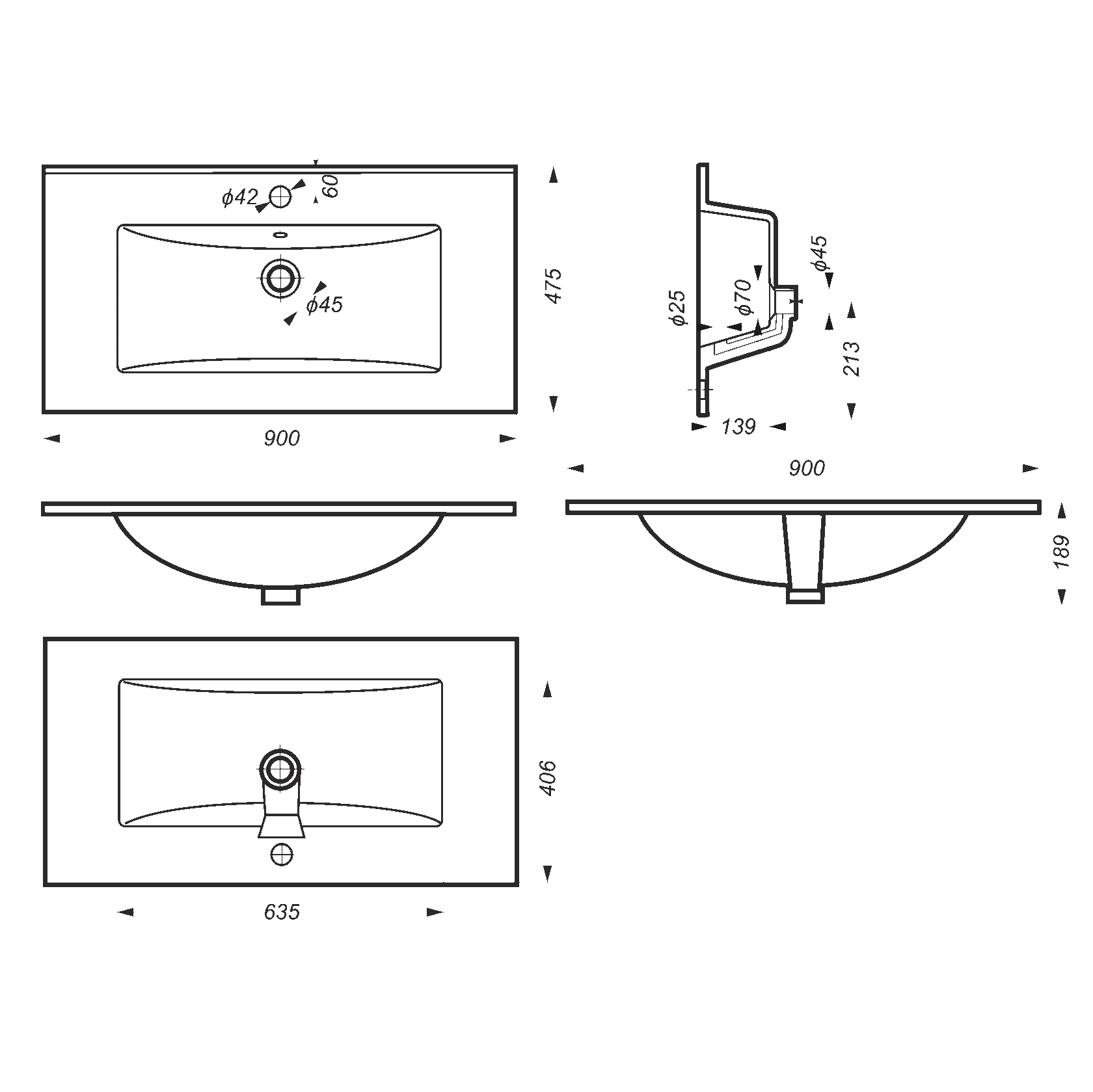 Раковина Sanita Luxe Quadro WB.FN/Quadro/90-C/WHT.G/S1 90 см