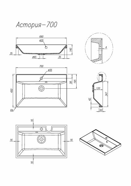 Размер: 700х450х154 Посадочная плоскость от 1см до 1,5 см Высота борта 5 см Материал Литьево... Подробнее