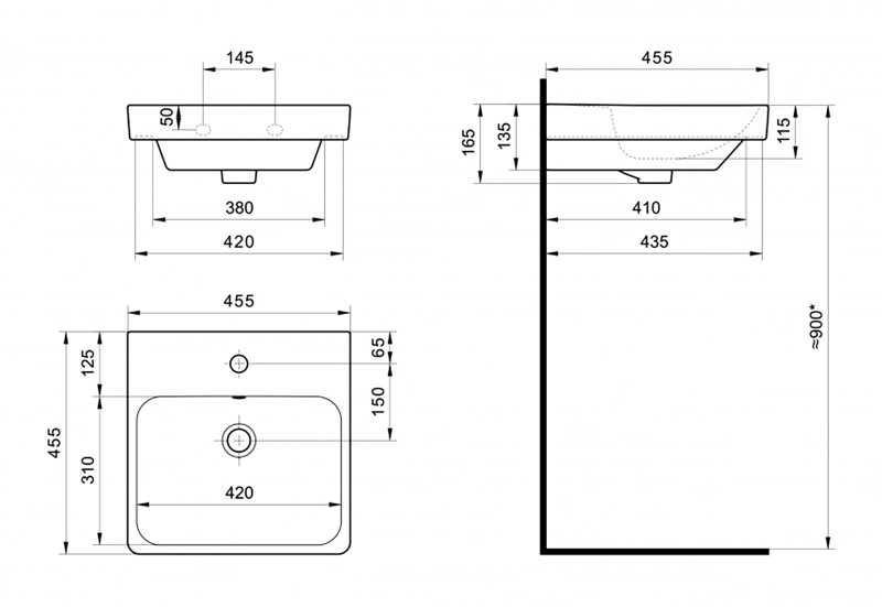 Тип: раковиныПо форме: прямоугольныеРазмер, мм (ШxГxВ): 457x454x165Размер в упаковке, мм (ШxГxВ): 587x484x195Цвет: белыйВес с упаковкой, кг: 13.1По монтажу: мебельнаяМатериал: керамика