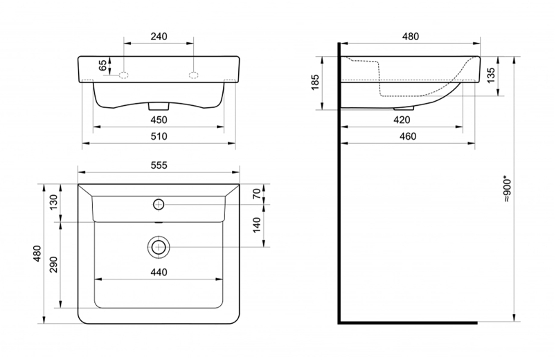 Тип: раковиныПо форме: прямоугольныеРазмер, мм (ШxГxВ): 550x475x180Размер в упаковке, мм (ШxГxВ): 580x505x210Цвет: белыйВес с упаковкой, кг: 16По монтажу: мебельнаяМатериал: керамика