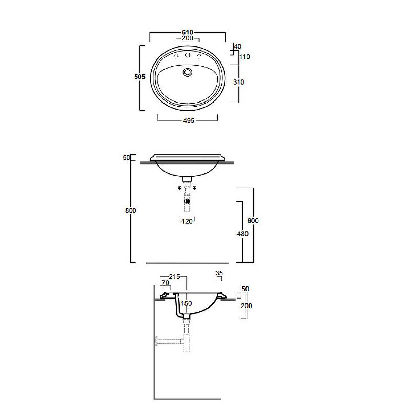 Врезная сверху столешницы
