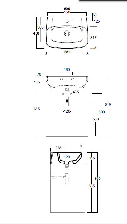 • Отверстия под смеситель: