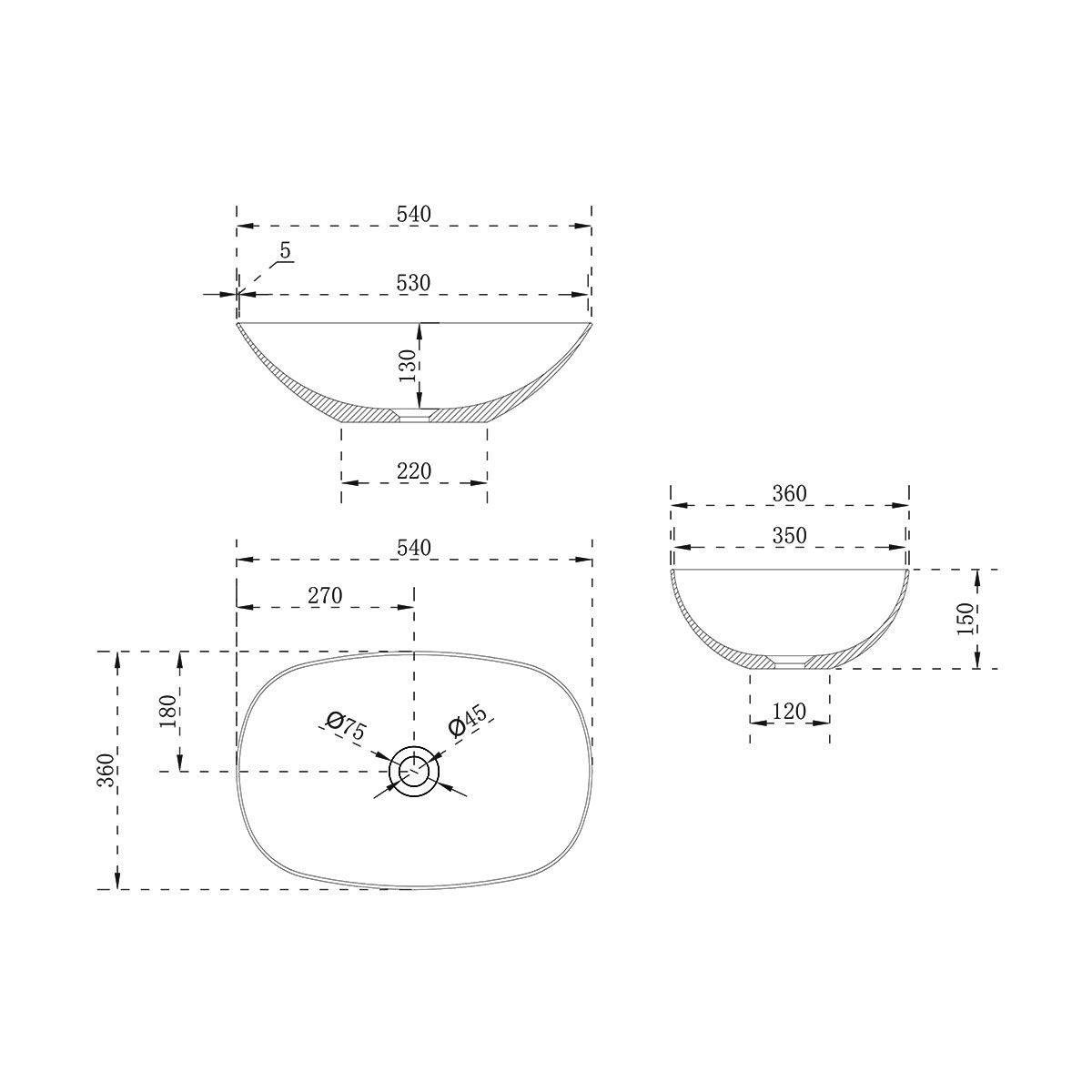 Раковина Solid Surface Vincea VBS-6T12MW, 540*360*150, накладная, цвет белый матовый