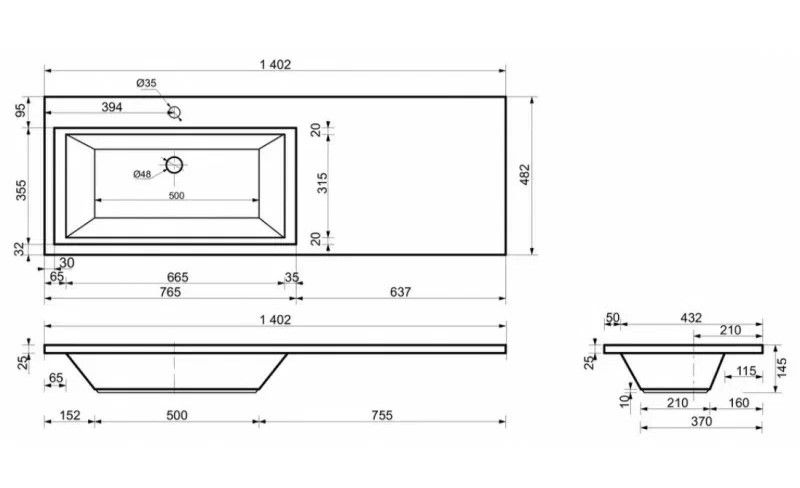 Раковина для мебели Style Line Estetus Даллас 140х48,2 СС-00002433 левая со столешницей, материал искусственный камень.Расположение столешницы - справа.Слив-перелив и донный клапан приобретаются отдельно