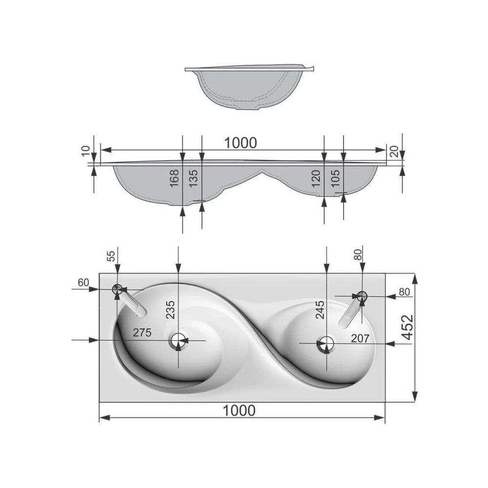 • Отверстия под смеситель: