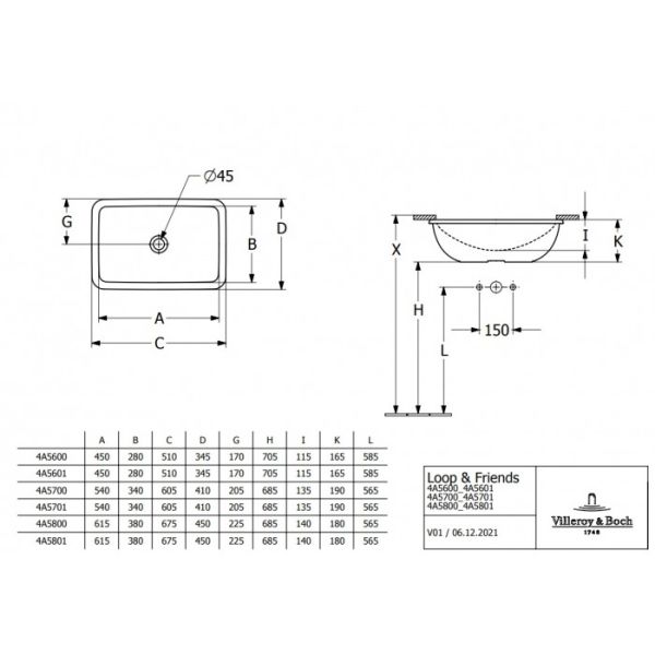 Раковина встраиваемая Villeroy Boch Loop & Friends 4A570001 белый купить