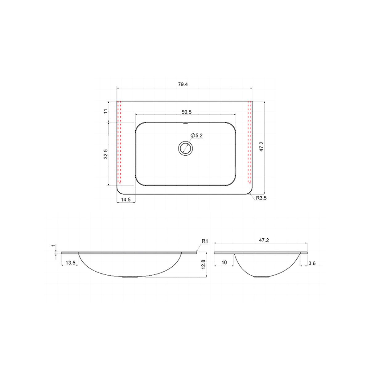794х472х128Отверстия под смеситель: